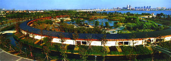 园中园――施苑,取名于范蠡西施泛舟蠡湖的历史传说。苑内茂林修竹拥抱,曲径幽溪环绕,苑池碧水一方,宛如月镜,境界天开。流韵、天远、悦红、清辉四亭犄角相望,顾盼生姿。环水而筑的水镜廊,呈圆弧型,长286.7米,中西合璧,造型别致,廊内镌刻集古今赞美太湖的名人诗词、绘画、摄影精品,凸现太湖文化之斑斓,感受五湖悠久之文明。廊前一泓碧水,荷莲满池,亭亭玉立,香远益清。
