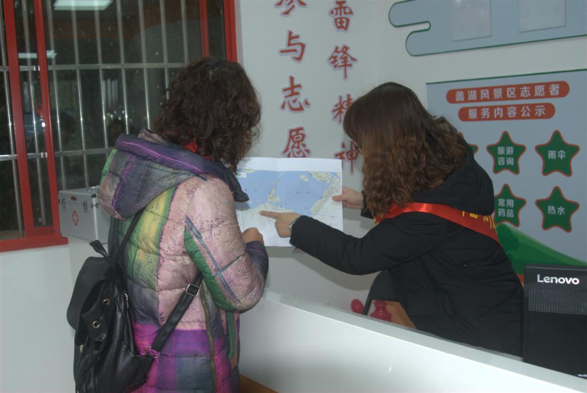 1月4日上午,游客华女士走进蠡湖风景区志愿服务站,询问路线并借用了一把雨伞。她对无锡景区内有这样的暖心服务表达了赞许。当日,蠡湖风景区志愿者服务基地新布置的“志愿服务站”正式运行。