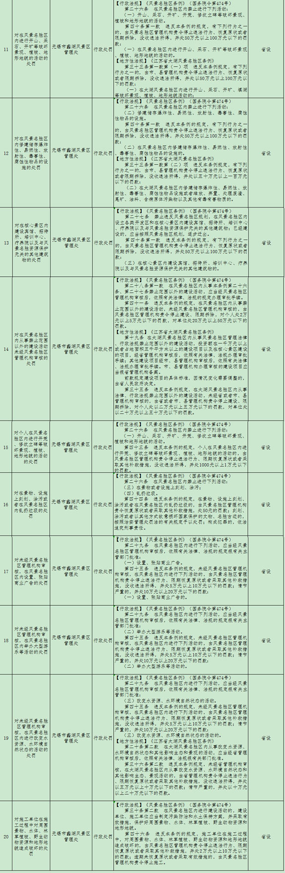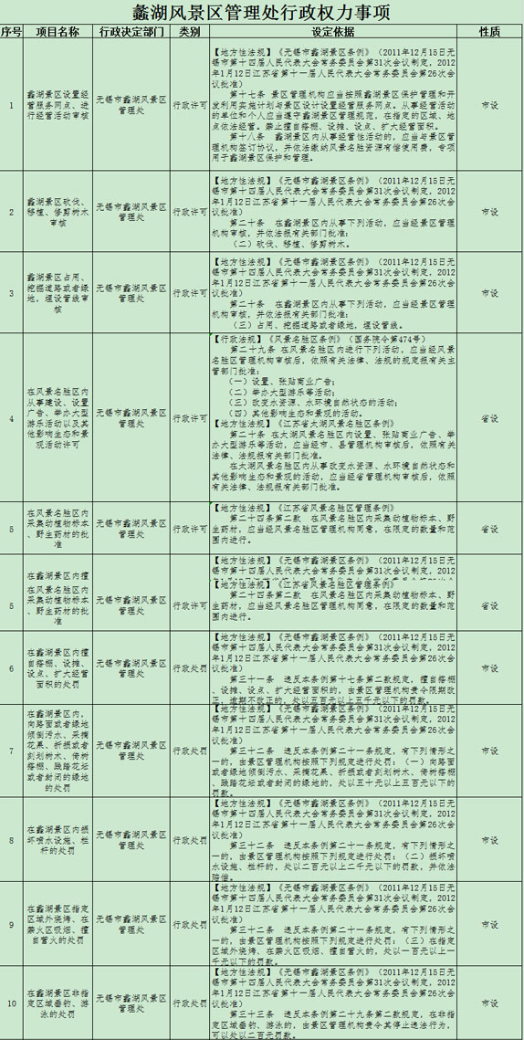 蠡湖风景区管理处行政权力公示