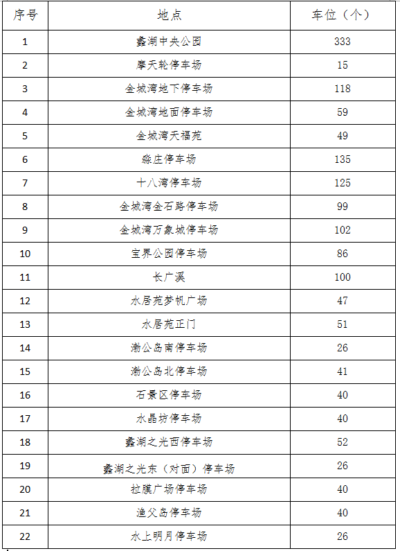 蠡湖风景区停车场分布表